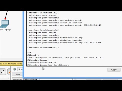 So, welcome to all! In this video, we are going to see the packet tracer activity "Configuring Switch Port Security" from CCNA Routing and Switching. In this activity, we will configure port security and finally, we will verify port security. - To configure port security, we will need to access the command line for s1 and enable port security on Fast Ethernet ports /1 and /2. We will do this on s1. - To enable port security on s1, we will go to s1, enable, configure terminal, and then go to the interface fastethernet /1 as well as /2. - To configure a range command, we can use the command "aprender to /1-2." Then, we will give the switch the "port security" setting. - Next, we need to set the maximum number of devices that can access the Fast Ethernet ports /1 and /2. Here, we will set the port security maximum as 1. - To secure the port, we will ensure that the MAC address of a device is dynamically learned and added to the running configuration. We can do this by using the command "my cutoff sticky." - Now, we need to set the violation action for the Fast Ethernet ports /1 and /2. We will set the violation as "restrict," so that the ports are not disabled when a violation occurs, but packets are dropped from an unknown source. - Lastly, we will disable all the remaining unused ports. We can use the "user range" keyword to apply this configuration to all the ports simultaneously. In this case, we will disable faster third /3 to 24 and the Gigabit Ethernet interfaces. - To disable these ports, we will go to s1, exit, and then use the command "interface range faster 3rd+2/3 till 24." Additionally, we will disable Gigabit Ethernet 1/1 till 2. - After disabling the...